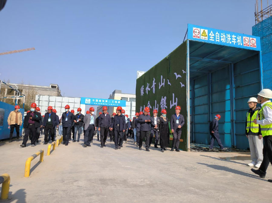 項目圍繞揚塵污染治理、質(zhì)量安全標(biāo)準(zhǔn)化與綠色施工等主題設(shè)置了觀摩展示區(qū),現(xiàn)場整潔有序的施工環(huán)境和項目人員豐富細(xì)致的講解獲得了觀摩人員的高度認(rèn)可。項目秉承綠色、低碳的理念,超標(biāo)準(zhǔn)配置三級車輛沖洗系統(tǒng),確保工程車車輪進(jìn)出干凈不帶泥土;切實落實裸土覆蓋、硬化道路、沖洗車輛、工地綠化、灑水抑塵等五個揚塵防治措施,在揚塵治理及空氣污染防治方面起到了示范帶頭作用。