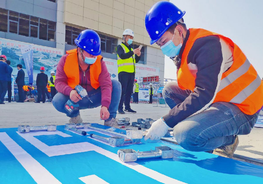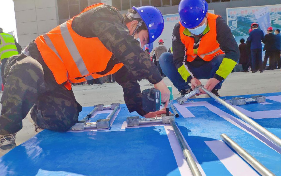 本次“安康杯”農(nóng)民工勞動(dòng)技能比賽分為墻磚砌筑和水電管道安裝兩個(gè)工種項(xiàng)目。鶴壁市各地的10個(gè)代表隊(duì)經(jīng)過前期初賽,共6個(gè)代表隊(duì)脫穎而出來到?jīng)Q賽。決賽上參賽隊(duì)員用管道編制CSCEC圖樣、用施工用磚砌筑L形墻體。賽場(chǎng)上熱火朝天,如火如荼,參賽隊(duì)員們斗志昂揚(yáng)、互相比拼、奮勇爭(zhēng)先,紛紛施展自身強(qiáng)硬本領(lǐng),也展現(xiàn)了項(xiàng)目一線工人頑強(qiáng)拼搏的精神風(fēng)貌。(畢曉)